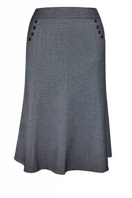 Модель из восьми слегка расклешённых книзу клиньев на узкой кокетке. Боковые клинья украшены удобными модными карманами и пуговицами. (Длина-65,70см)
