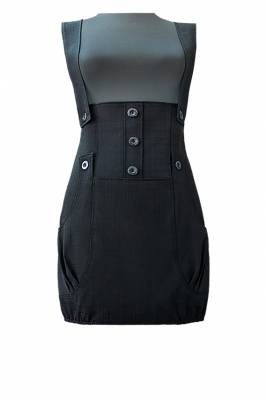 Сарафан очень модного сейчас силуэта, с объёмными , за счёт заложенных складочек карманами, заключёнными в красивые рельефные швы. Снизу боковые стороны присборены на резинку. (Длина-45см)