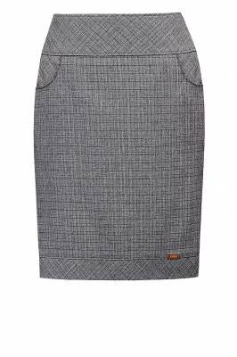 Юбка-карандаш на кокетке с округлыми карманами и отделочной полоской по низу, выкроенной, как и кокетка, по "косой", что даёт эффектный контраст разных направлений клетчатого рисунка. (Длина-60см)