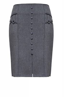 Юбка силуэта карандаш, идеально обрисовывающая фигуру. Красивый крой подчёркивается контрастным кантом и пуговицами. Сзади подкройная деталь со встречной складкой. (Длина-60см)