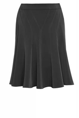 Модель с красивыми диагональными клиньями по бедрам, делающими фигуру визуально стройнее. По низу среднее клешение. Ткань черная в клетку, нанесённую тонкими (1мм) белыми линиями. (Длина 75см).