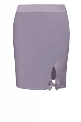 Очень красивая модель с эффектным разрезом-каплей, украшенным бантом. Сшита из тканей компаньонов. Сзади шлица. (Длина-50см)