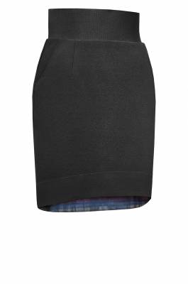 Очень модные модели из плотного трикотажа с разноуровневой линией низа. Талия на широкой (10 см) резинке. Удобные карманы. Нижний срез с изнанки обработан клетчатой обтачкой. (Длина спереди - 50см, сзади - 55см)