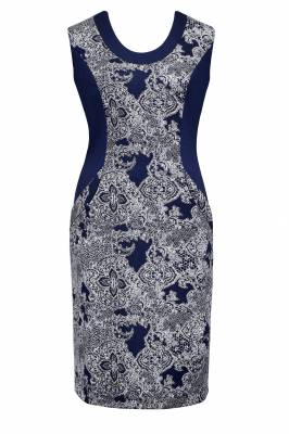Красивый трикотажный сарафан с полукруглыми рельефами, из эффектных тканей-компаньонов. В рельефах скрыты удобные карманы. (Длина-70см)