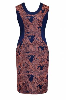 Красивый трикотажный сарафан с полукруглыми рельефами, из эффектных тканей-компаньонов. В рельефах скрыты удобные карманы. (Длина-70см)