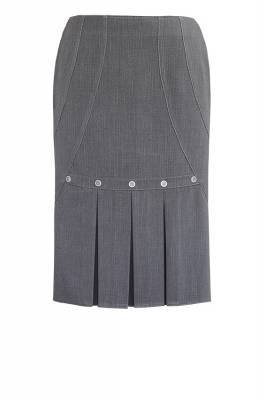 Элегантная юбка с красивыми боковыми рельефами и встречными складками от уровня колен. Задняя половинка повторяет переднюю, но со швом посередине до складок. (Длина-70,75см)