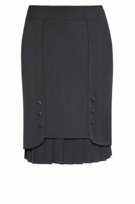 Интересная модель очень модного разноуровневого кроя по низу, украшенная закруглёнными шлицами на пуговицах спереди и сзади, снизу выглядывают складки. (Длина 60см)