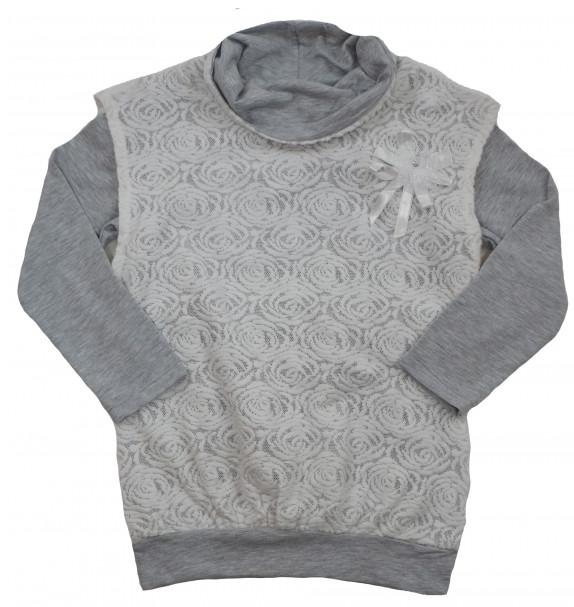 Мягкий трикотаж, удлиненная модель, красивое, кружевное украшение понравятся девочкам.
