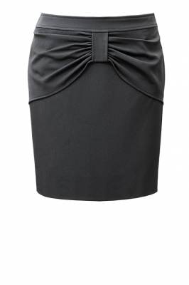 Молодежная юбка-карандаш, украшенная спереди модной драпировкой.